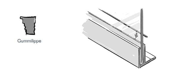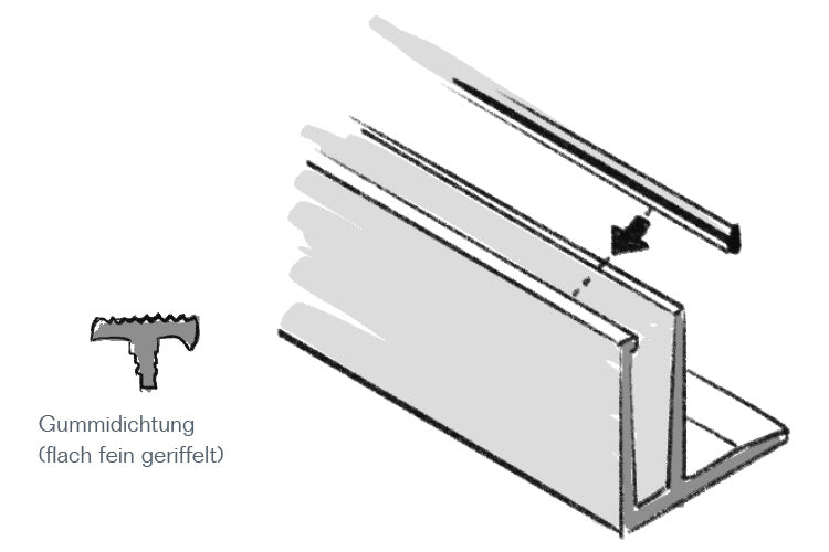 1. Insert the rubber seal (flat, finely grooved) flush into the prefabricated groove of the aluminum block.