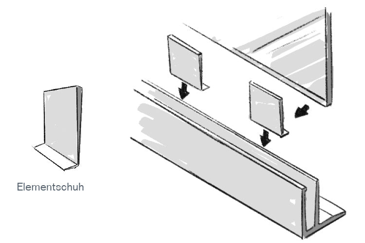 2. Insert the element shoes into the aluminum block. Distribute these evenly over the appropriate length. Then carefully insert the glass element into the aluminum block (on the white “shoes”) and hold it.