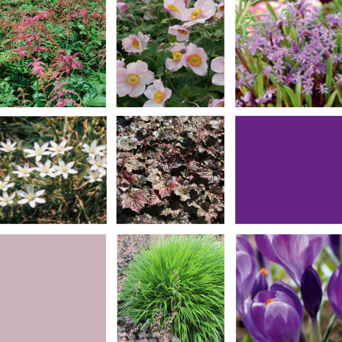The delicate white and purple tones of this combination bring elegance and lightness to shady and semi-shady garden areas - and not just during the summer months. This module also scores points in winter with its evergreen aspects. The planting is suitable for any humus-rich garden soil and tolerates short-term drought.