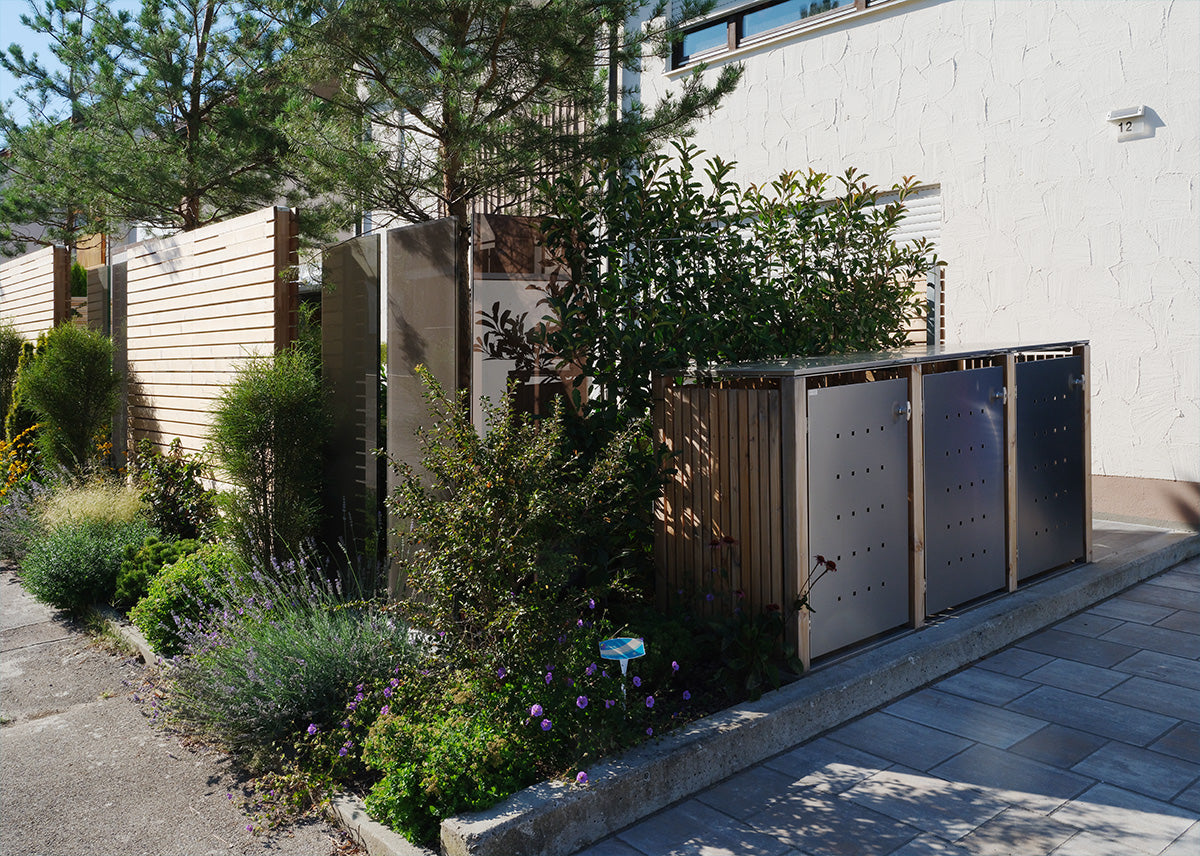Mülltonnen lassen sich mit stilvollen Verkleidungen aus Holz, Metall oder Glas unauffällig integrieren. Wichtig sind Material, Pflege und ein Design, das zum Garten passt.